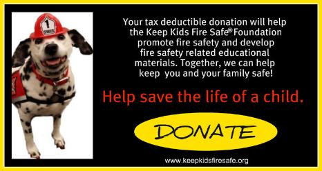 Keep Kids Fire Safe® Foundation is a federally recognized 501(c)(3) non-profit charitable organization dedicated to teaching fire safety knowledge and skills to children and their caregivers based on fire safety research. All rights reserved by the Keep Kids Fire Safe® Foundation. No material on these pages may be archived, retransmitted, saved in a database, reproduced, or used without the expressed written consent of the Keep Kids Fire Safe® Foundation, 106 East Poplar Street, Suite 200, Clarksville, Arkansas 72830. Copyright 2008 - 2020. |